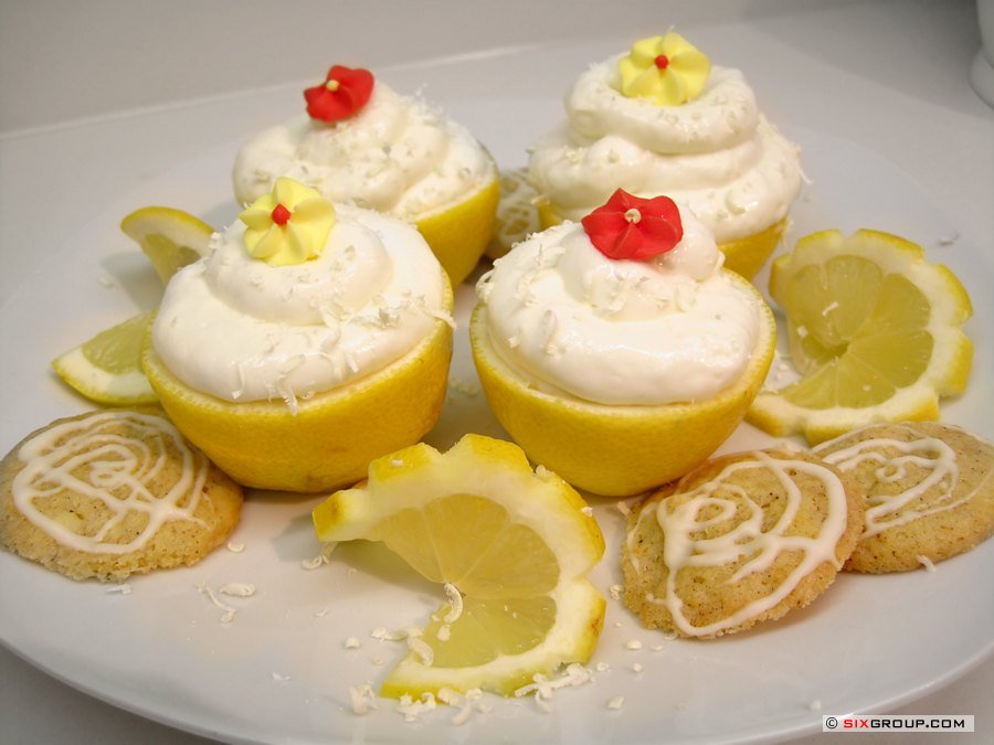 Wenn die Masse anfängt dicklich zu werden, Sahne steifschlagen und unterheben. Die Creme in einen Spritzbeutel mit großer Lochtülle füllen und in die Zitronenschalen spritzen. Mind. 60Min. kalt stellen.
